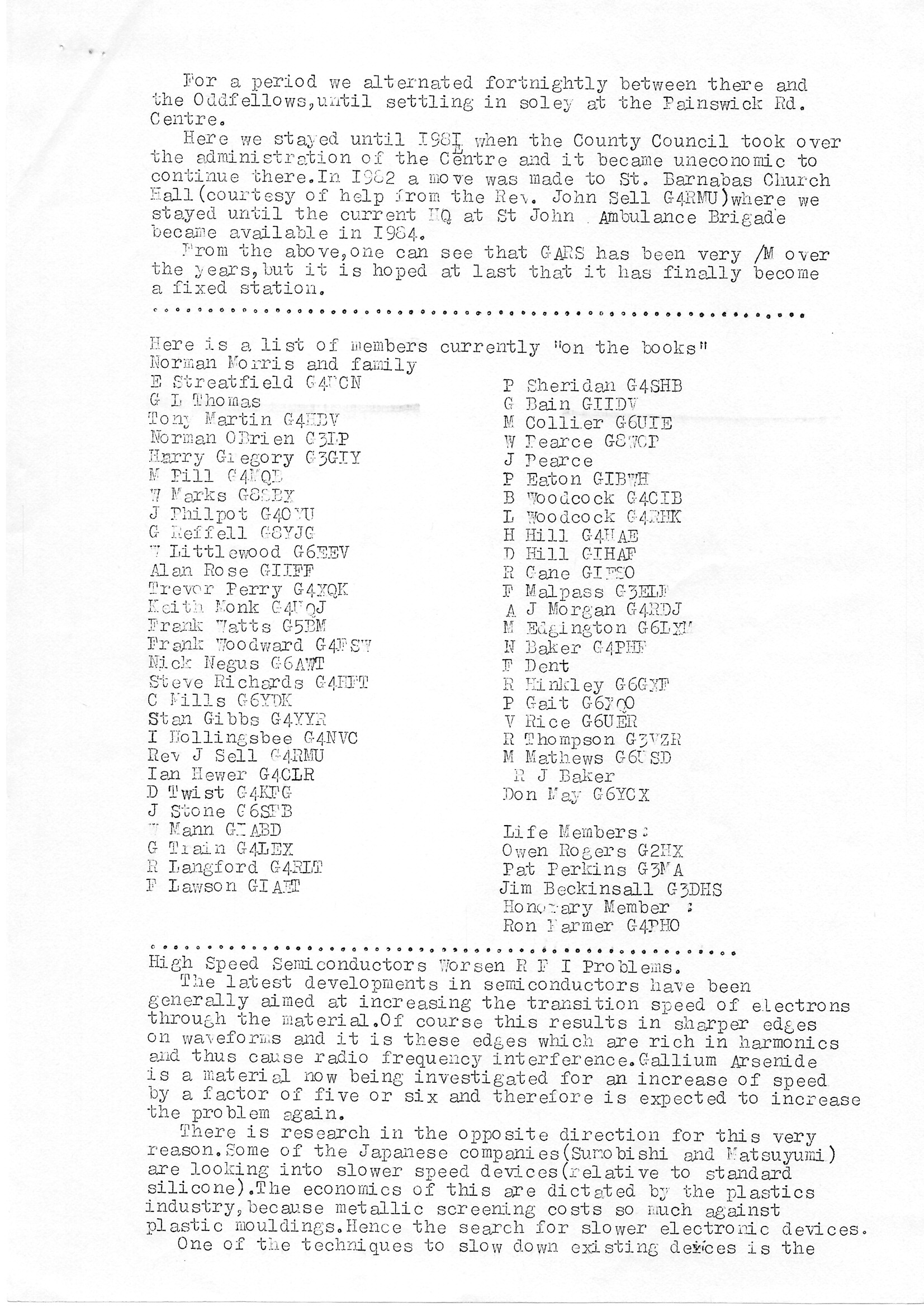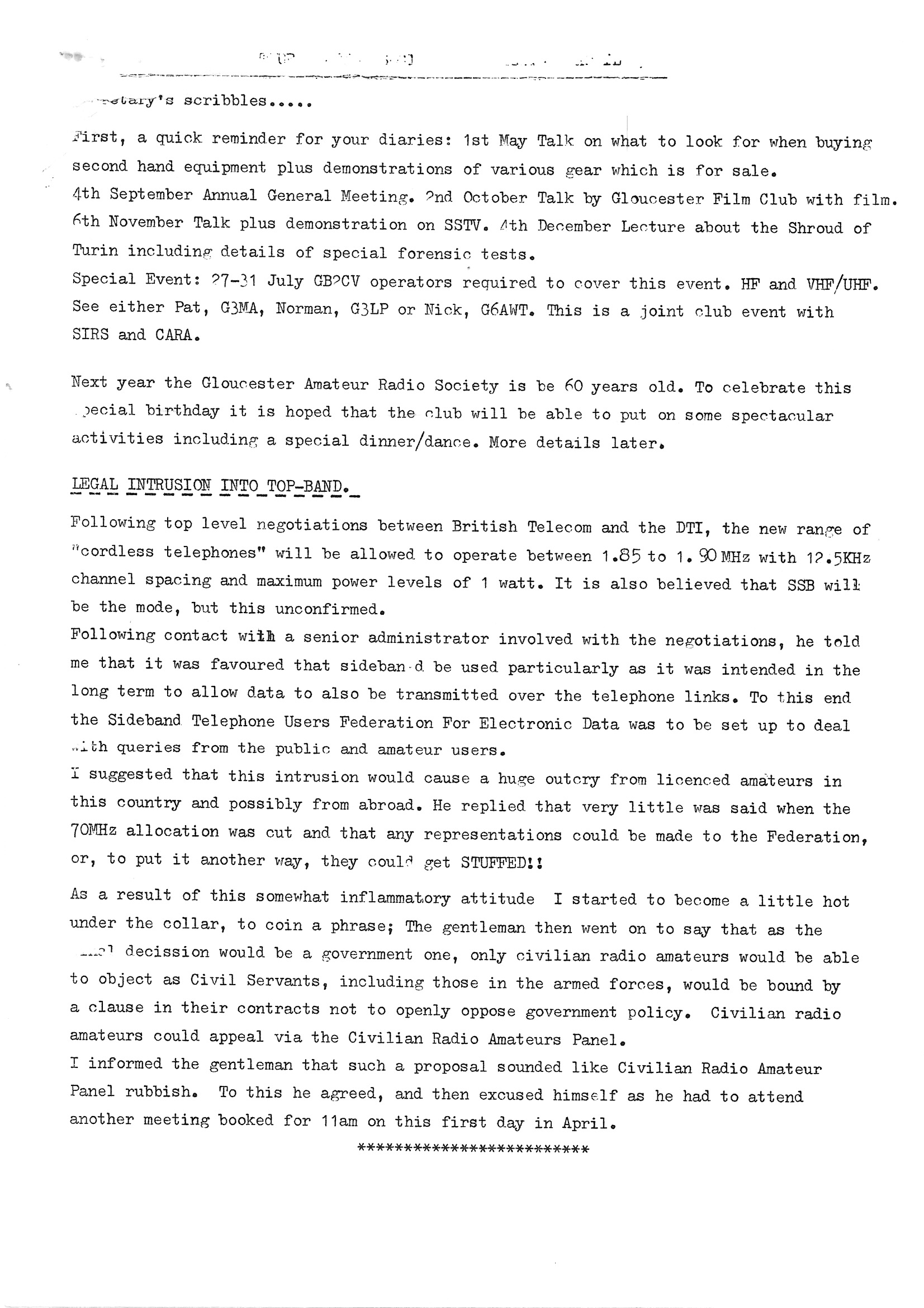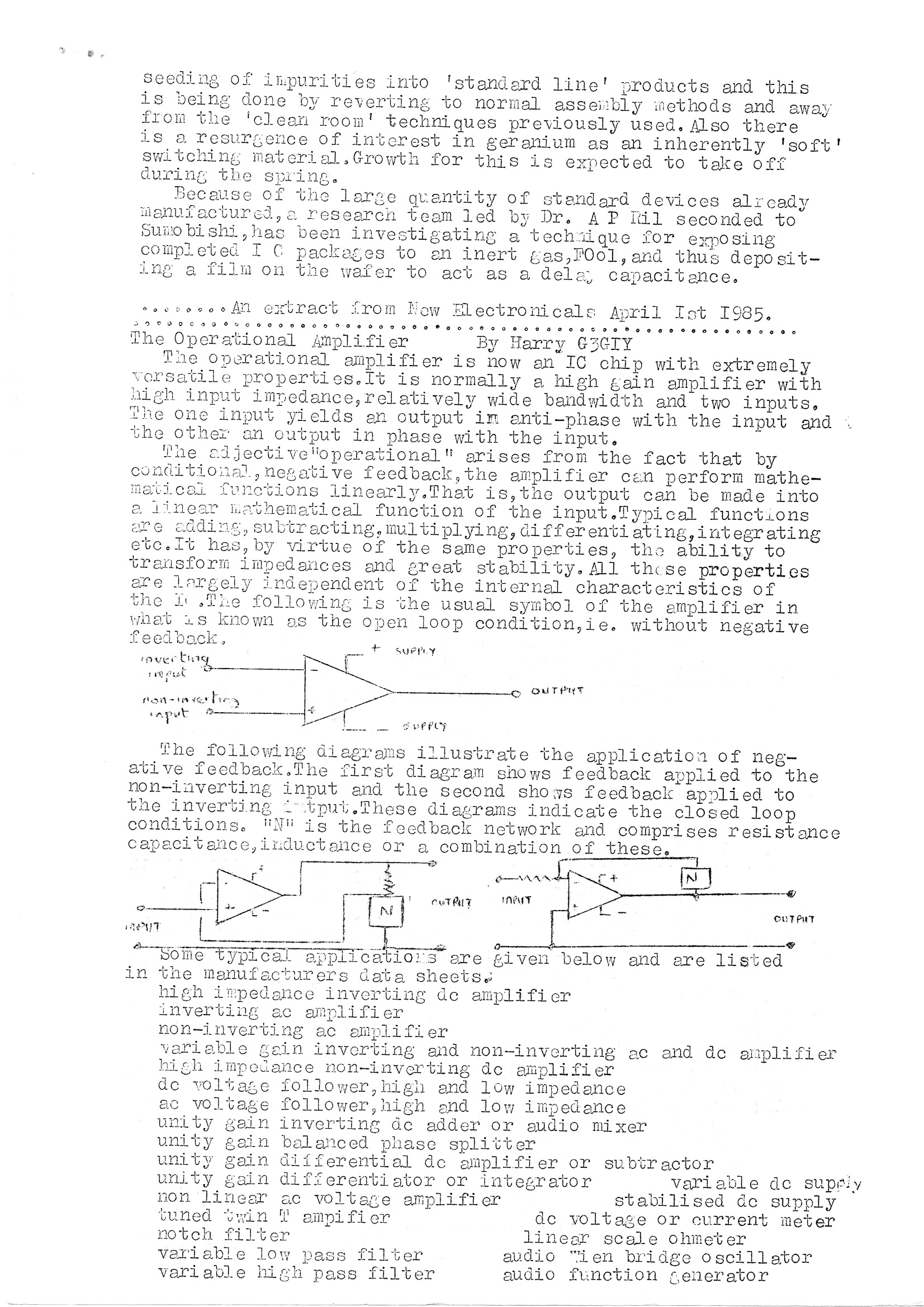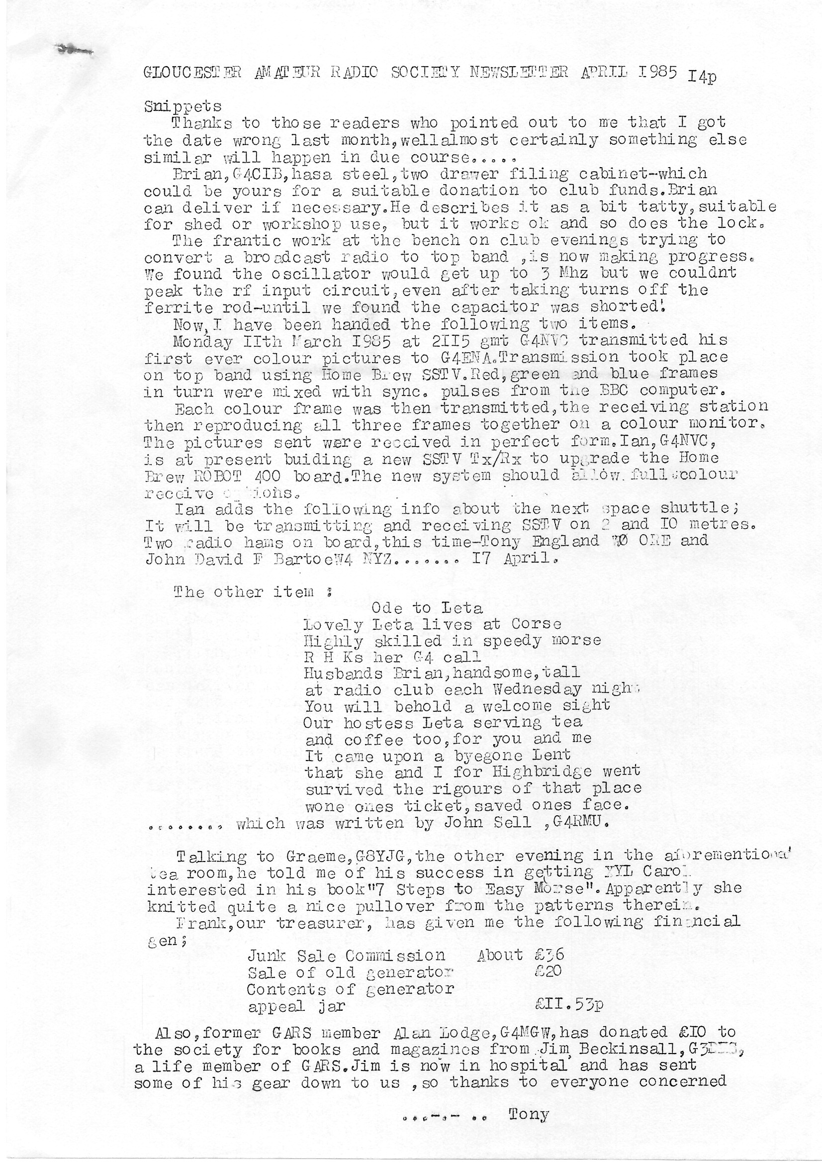 Newsletter April 1985