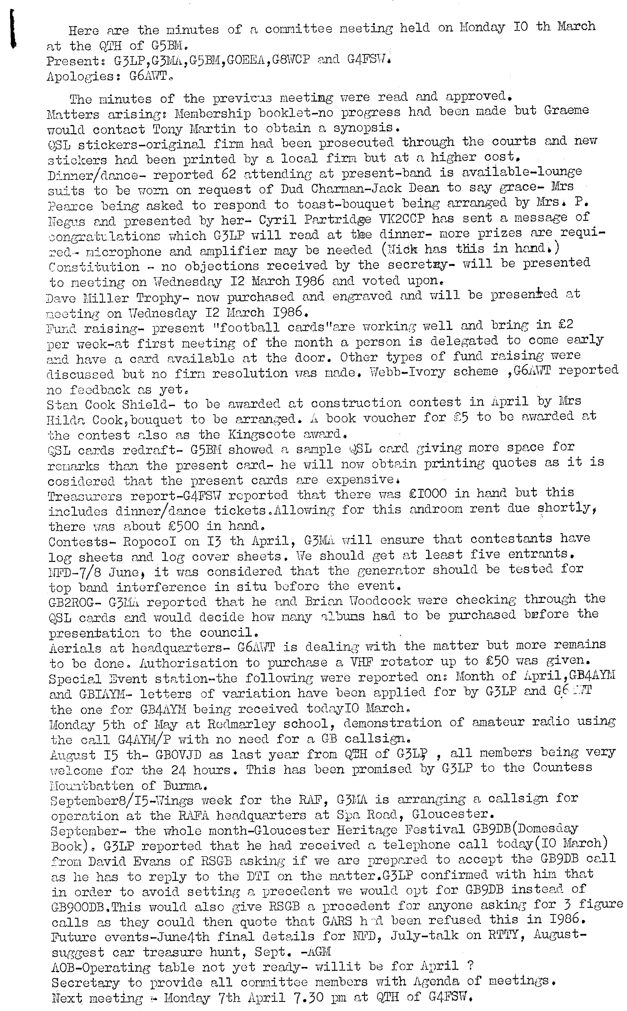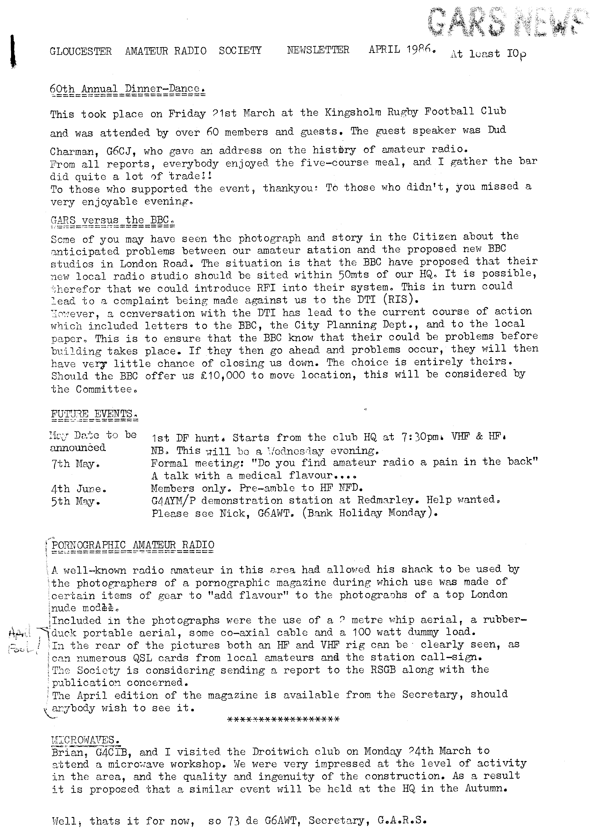 Newsletter April 1986
