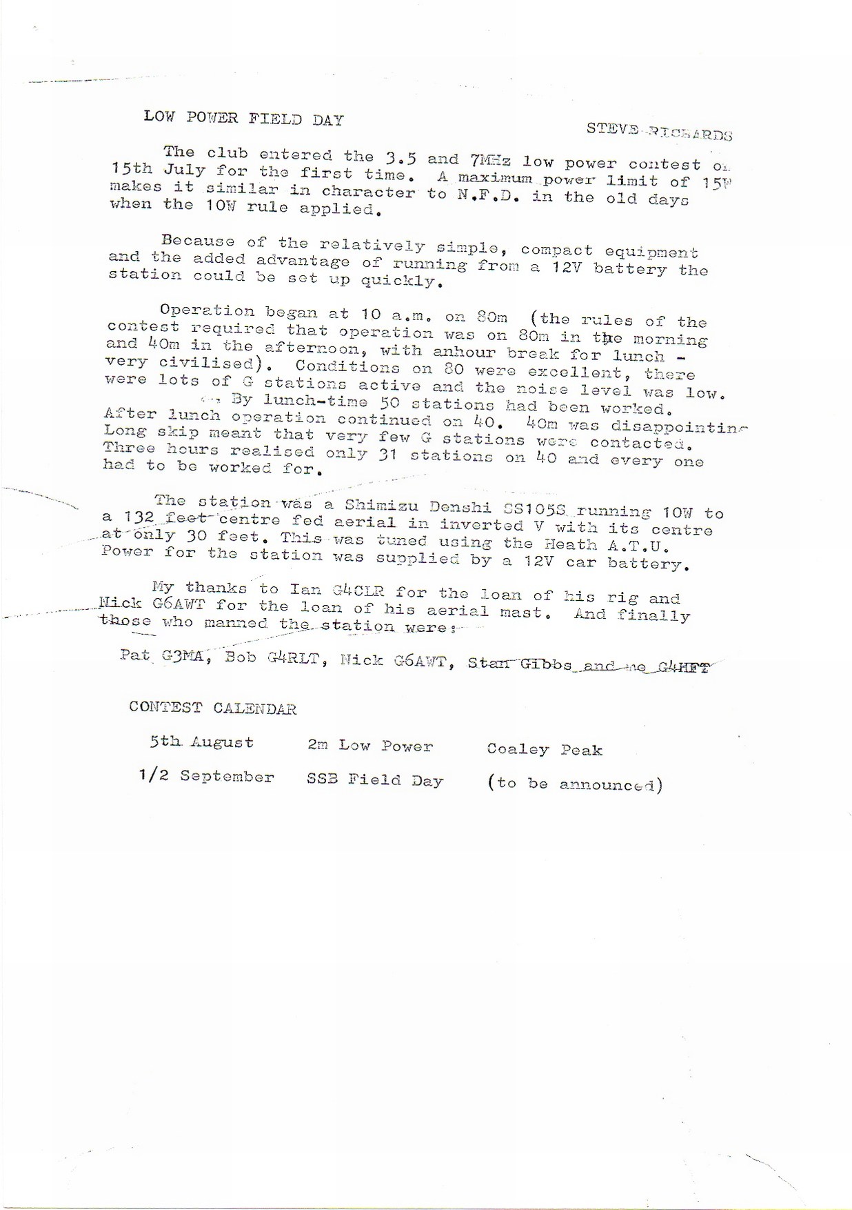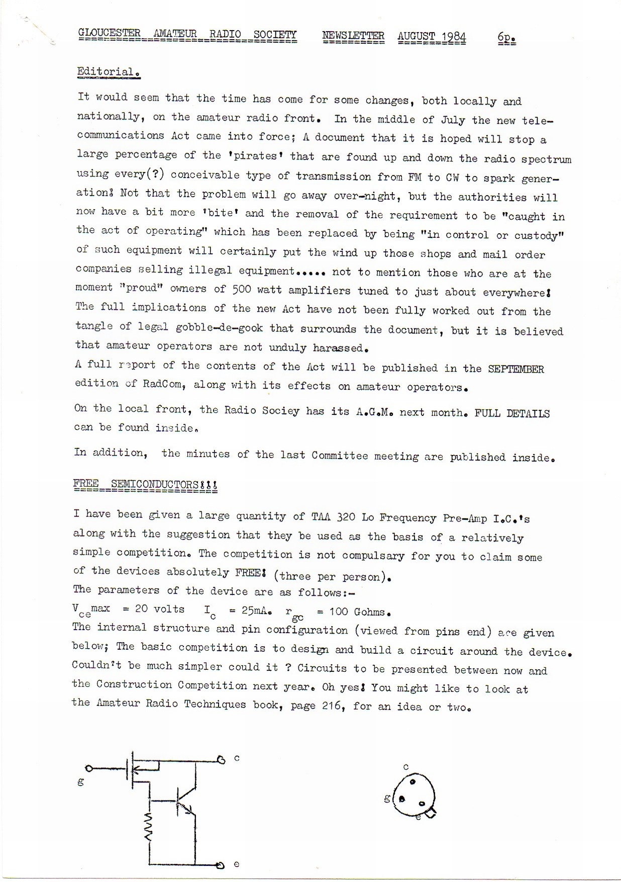 Newsletter August 1984