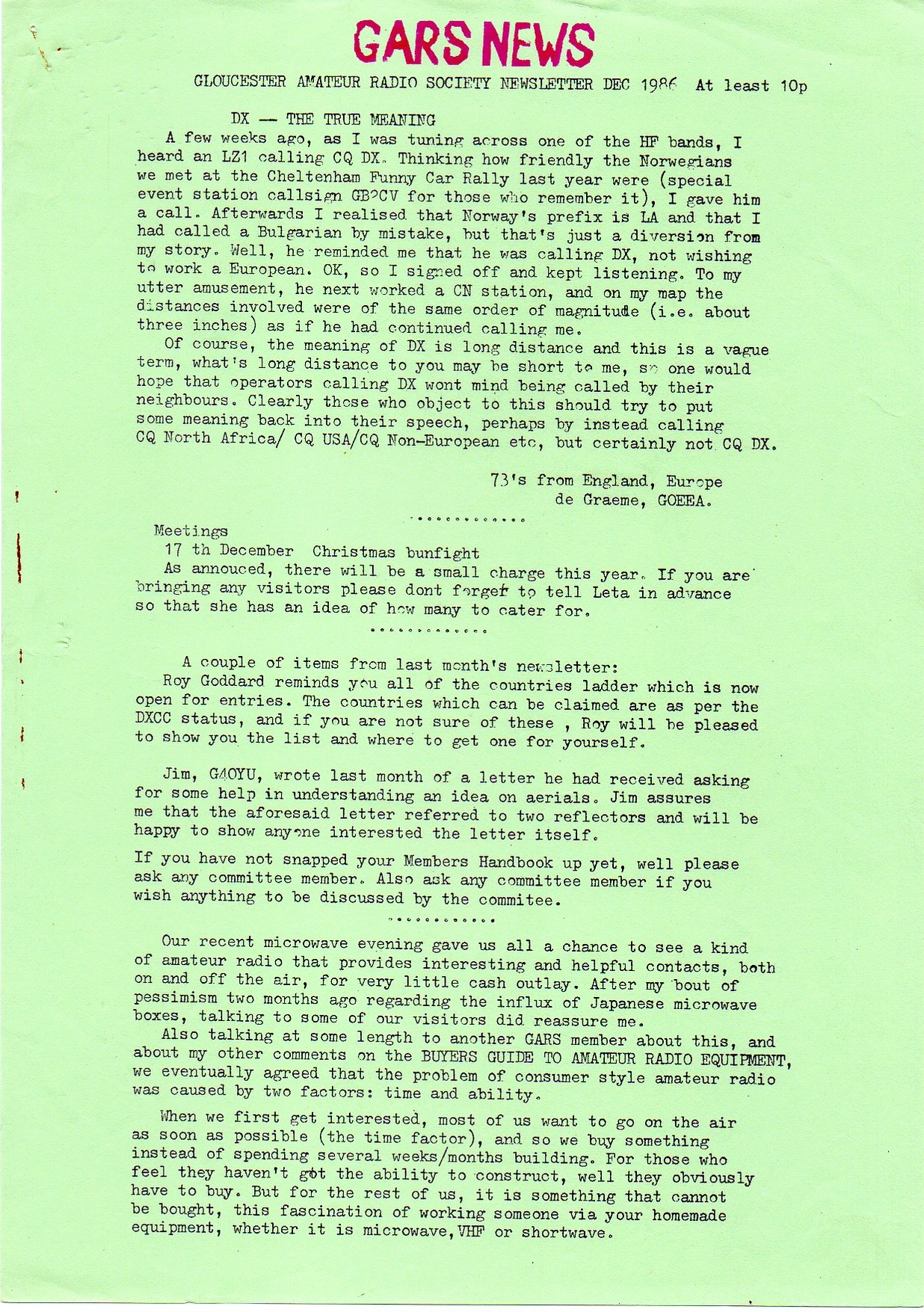 Newsletter December 1986