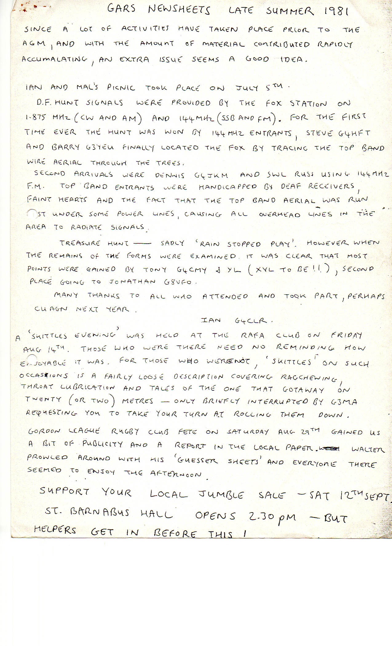 Newsletter Late Summer 1981