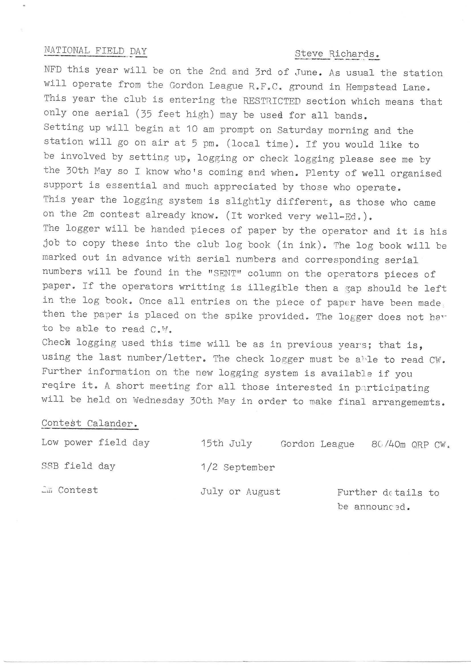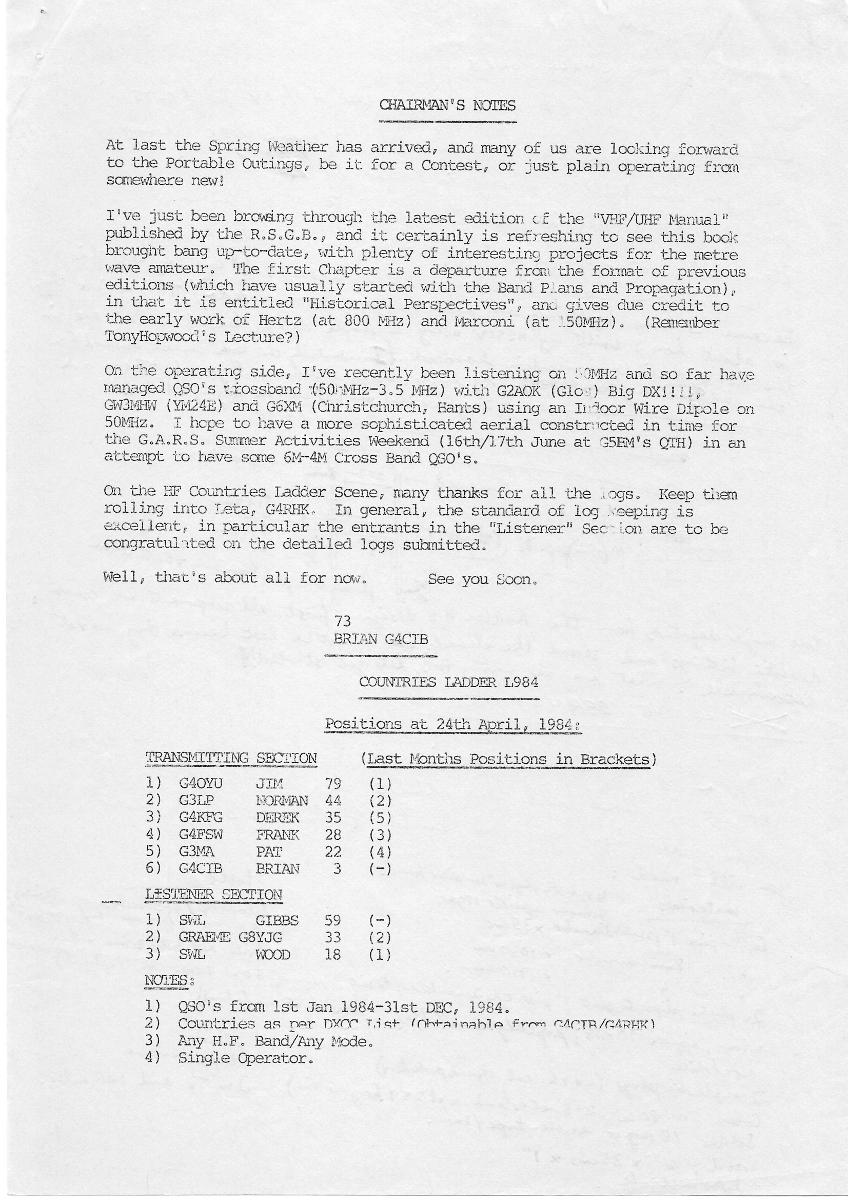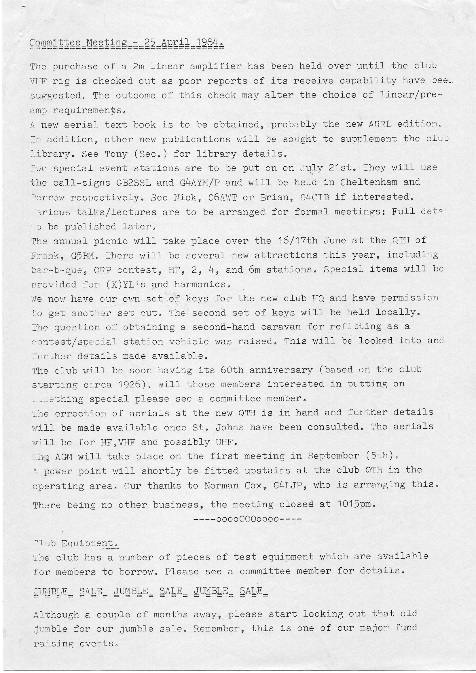 Newsletter May 1984