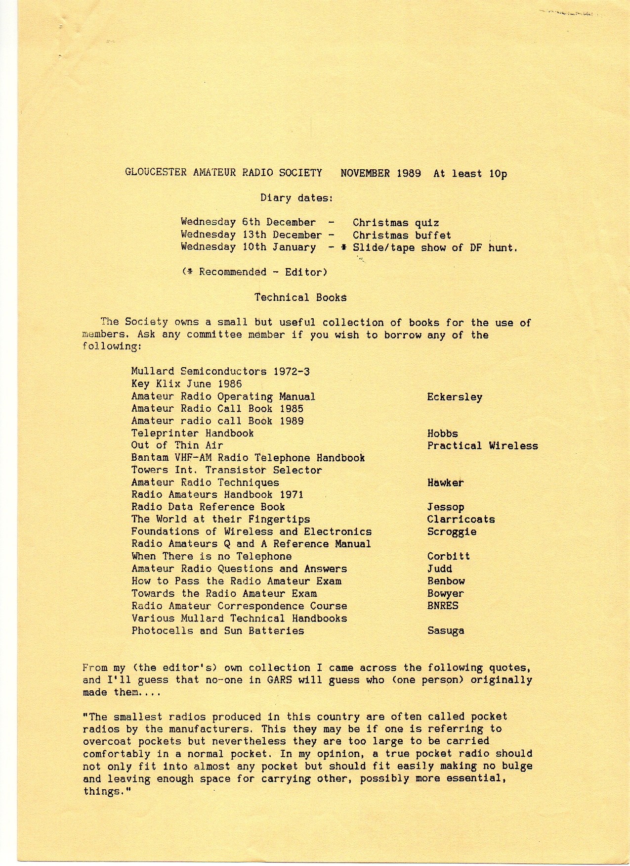 Newsletter November 1989