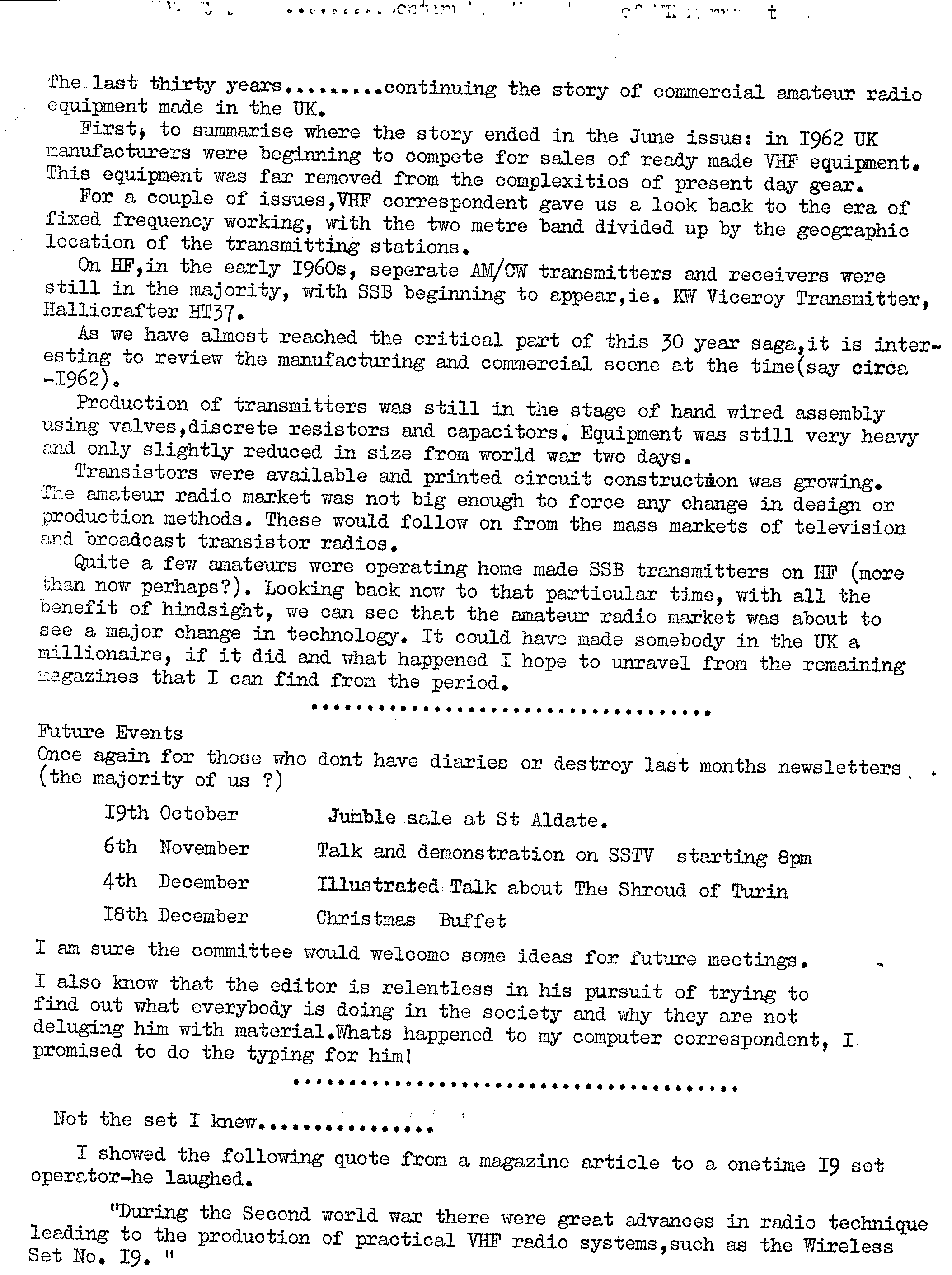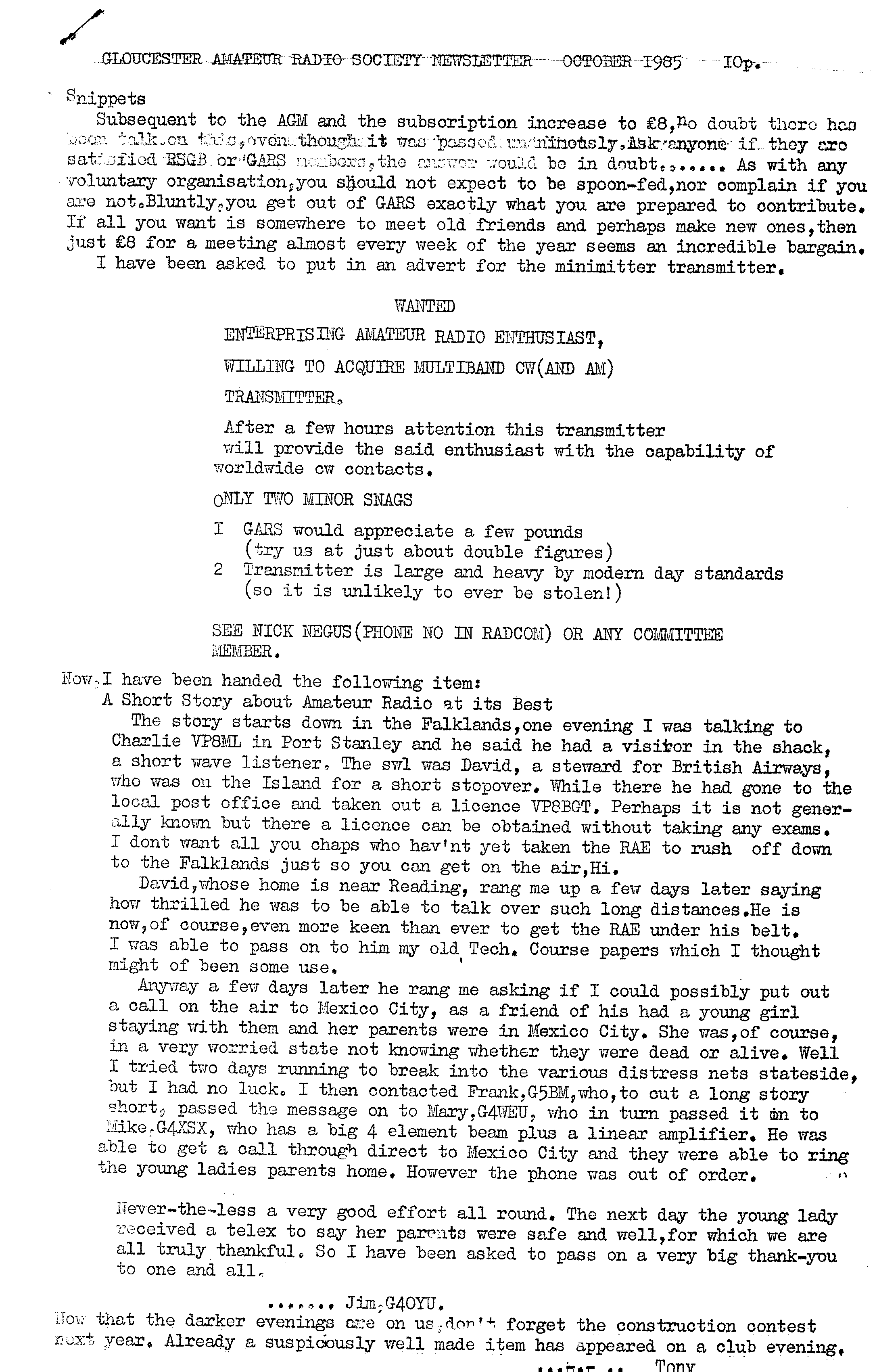 Newsletter October 1985